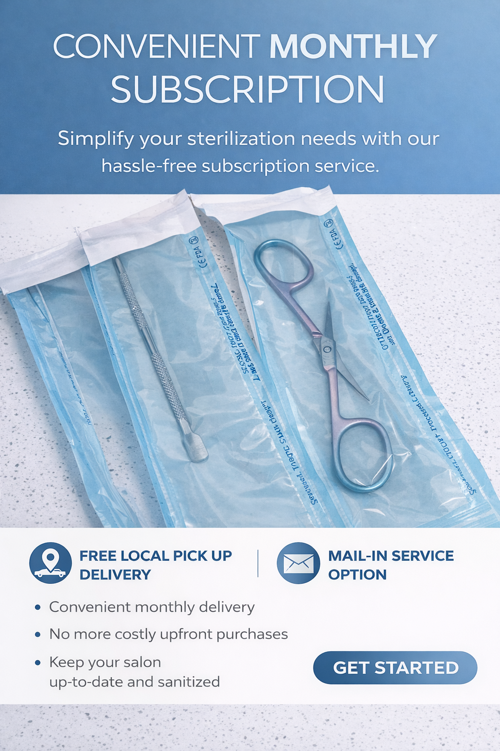 Using hospital-grade autoclave technology, we ensure your tools are properly sterilized, compliant, and ready for safe use. No more worrying about maintenance, testing, or equipment downtime — just consistent, dependable service that protects your clients, your reputation, and your business.